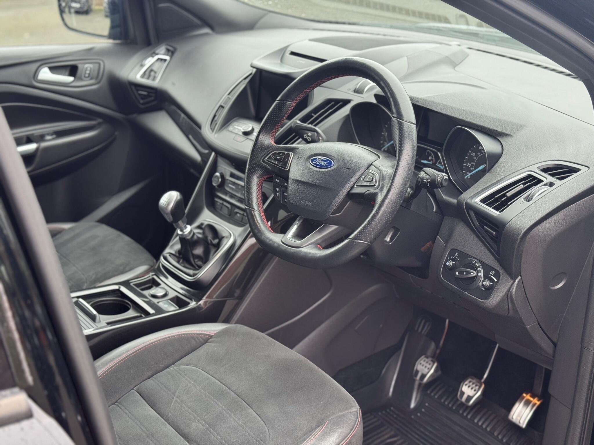 VIEWING BY APPOINTMENT, WE ARE FREQUENTLY OUT COLLECTING AND DELIVERING VEHICLES SO PLEASE CALL BEFORE TO MAKE SURE THIS VEHICLE IS STILL AVAILABLE* LIVE WALK ROUND VIDEOS CAN BE SENT BY REQUEST, HASSLE FREE DELIVERY TO YOUR DOOR PLEASE ENQUIRY FOR COST* BUY THIS CAR TODAY FROM £67 A WEEK WITH A £2500 DEPOSIT, HPI CLEAR, 2 KEYS, Rare Ford Kuga ST-Line AWD 2.0 tdci manual finished in Agate black paint, 51,000 miles from new backed up with Full Ford service history, services at 17k, 32k, 41k and just done at 50k miles, Very high spec which includes the All important and very Rare Panoramic opening roof, Front and rear parking sensors, Apple carplay/Android carplay, Cruise control, Dual zone climate control with auto A/C, ST -Line sprots seats with red stitching, DAB radio, AUTO lights and wipers, Heated front windscreen, Heated electric folding mirrors, bluetooth phone prep with music sync, Power supplies, multifunctional steering wheel, Spare wheel, Sold with the our 3 month/3000 mile warranty this can be extended to a 12 months at cost, LOCATED JUST 5 MINUTES FROM JUNCTION 9 OF THE M5, OPEN 6 DAYS A WEEK, FAMILY RUN BUSINESS WITH OVER 35 YEARS EXPERIENCE, FINANCE AGREED THE SAME DAY, DELIVERY AVAILABLE, PART X WELCOME, please see our website for more vehicles, new stock arriving weekly -